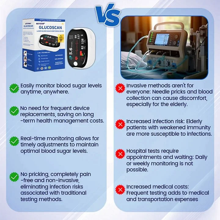 No more finger pricks, no more blood. BQYOOM™ GlucoScan uses advanced laser technology to measure your blood sugar accurately—without breaking the skin. It’s ideal for seniors, children, or anyone tired of painful daily testing.