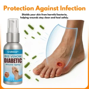 Even minor wounds can become serious if infected. With natural antibacterial properties, CVREOZ® Bee Venom Diabetic Wound Spray shields your skin from harmful bacteria, helping wounds stay clean and heal safely.