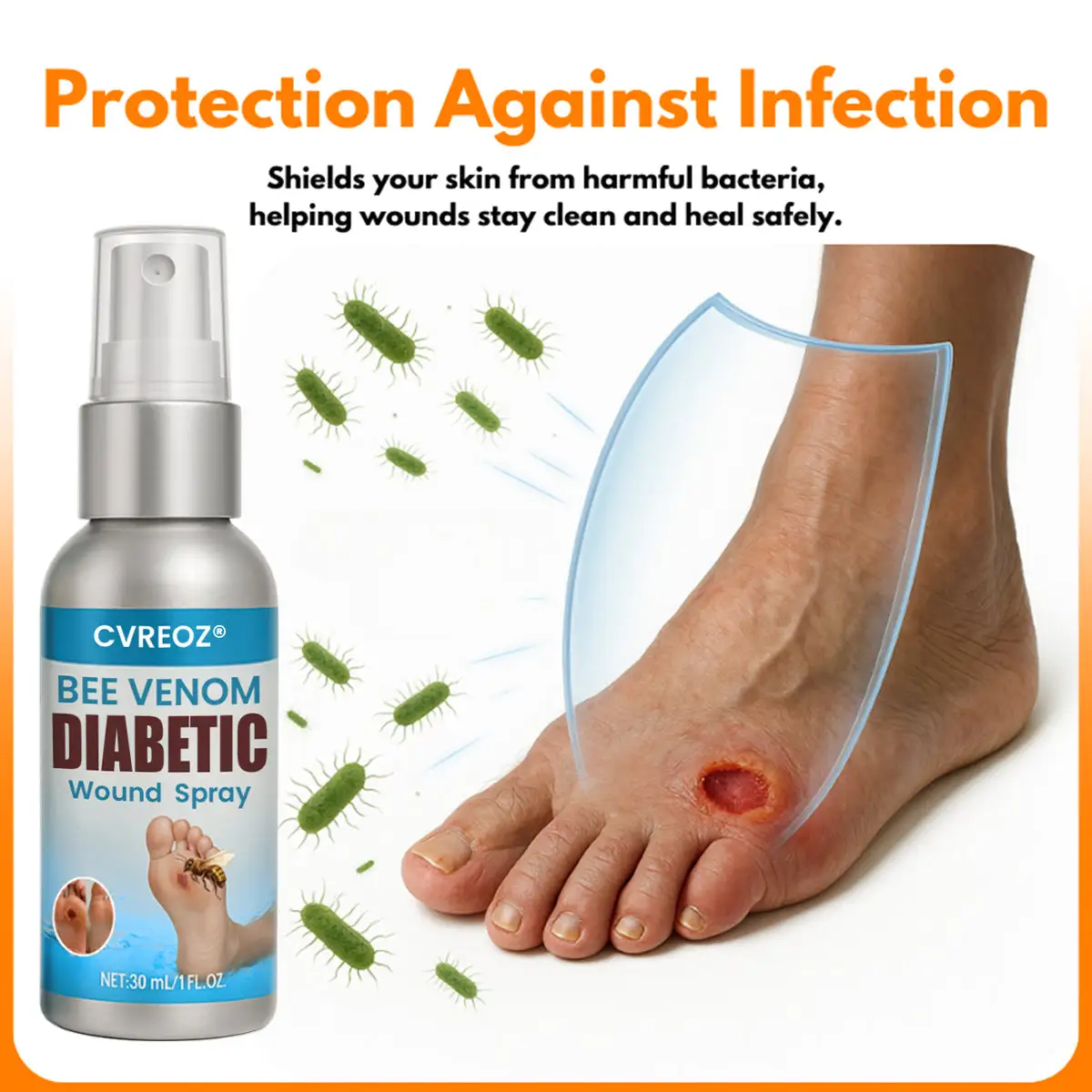 Absolutely. CVREOZ® Bee Venom Diabetic Wound Spray is specifically designed for sensitive diabetic skin. Its mild and soothing formula helps minimize irritation while offering essential healing and protection.