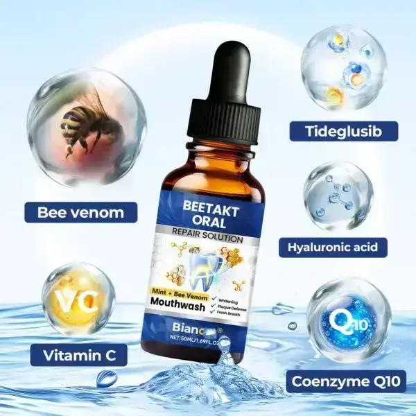 Biancat® BeeTakt Oral Repair Solution provides lasting oral protection by using the potent antioxidants naturally present in bee venom to neutralize harmful free radicals. This helps maintain strong, resilient gums, supports healthier teeth, and shields the mouth from ongoing damage.