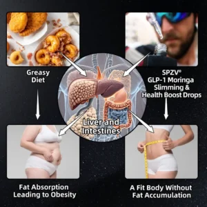 SPZV® Moringa Slimming & Health Boost Drops help control blood sugar by boosting insulin secretion and inhibiting glucagon release, stabilizing blood sugar levels. also delays gastric emptying and increases satiety, reducing food intake and promoting weight loss. Weight loss improves insulin sensitivity, lowers blood sugar, and reduces diabetes complications, making SPZV® an effective tool in diabetes management.