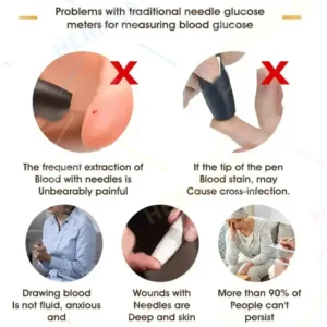 No more invasive and risky methods of blood sugar testing! Measure your blood sugar safely, without the risk of cross-infection or needle wounds on your fingers.
