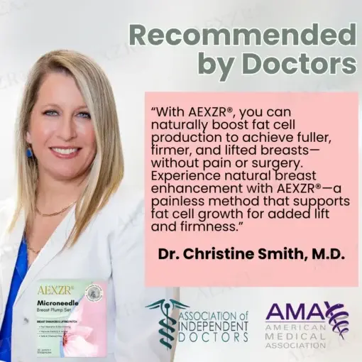 The AEXZR® Microneedle Breast Plump Set is a doctor-recommended, non-invasive solution for natural breast enhancement, recognized by the American Medical Association for its safety, innovation, and proven effectiveness. This advanced 2-step system combines microneedle patch technology with a nutrient-rich serum to deliver active ingredients deep into the skin—stimulating collagen production, improving elasticity, and enhancing volume and lift without surgery, pain, or downtime. Trusted by healthcare professionals, AEXZR® offers a clinically backed, at-home alternative to invasive procedures, helping women achieve fuller, firmer breasts with confidence and visible results.