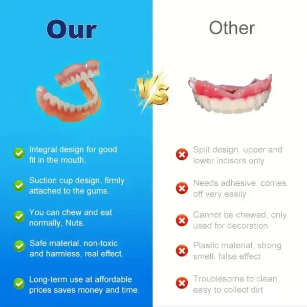 Introducing Vioralifes® Multi-Functional ThermoFlex Silicone Denture Set — the breakthrough in denture technology that solves all the frustrations and fears you’ve had about dentures. No more slipping, no more pain, and no more embarrassment. Just a smile that feels like yours again, and the confidence to take on the world.