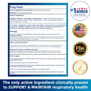 These active ingredients form a protective layer, supporting the repair of damaged cells and strengthening your respiratory system’s resilience. Applied directly to your chest, the patch delivers these tiny, potent ingredients directly into your bloodstream, bypassing the digestive system for faster, more effective, and continuous relief. Just apply one discreet patch for up to 24 hours of soothing support.