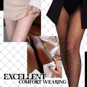 A stylish high-waisted womenâs hosiery designed with detailed diamond-shaped, fishnet-like knit and stunning pieces of rhinestone that sparkles impeccably. These fine bedazzled tights offer a lovely mix of elegance and flirtatious touch of sexy elements that can flatter any legs. Moreover, it can perfectly create that gloriously lithe illusion that can make any legs look more attractively long and slender. A great fashion addition thatâs bound to shine and turn heads everywhere you are!