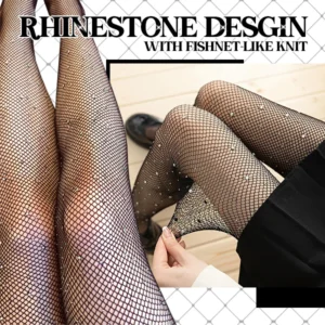 A stylish high-waisted womenâs hosiery designed with detailed diamond-shaped, fishnet-like knit and stunning pieces of rhinestone that sparkles impeccably. These fine bedazzled tights offer a lovely mix of elegance and flirtatious touch of sexy elements that can flatter any legs. Moreover, it can perfectly create that gloriously lithe illusion that can make any legs look more attractively long and slender. A great fashion addition thatâs bound to shine and turn heads everywhere you are!