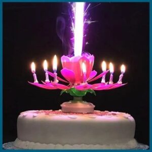 It has a BIRTHDAY MUSIC PLAYING while the CANDLES ROTATES as the flower blooms. It is made of HIGH-QUALITY PLASTIC material making it SAFE and NON-TOXIC to use. The PLASTIC is RETARDANT making it SUPER SECURE and NON-BURNING.