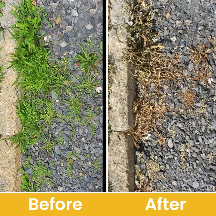 Dual-action mechanism: visibly burns leaves on contact, then penetrates deep to destroy the root structure — preventing regrowth at the source.