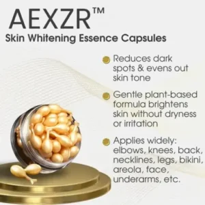 Introducing AEXZR™ Skin Whitening Essence Capsules, your key to unlocking radiant skin from within. Formulated with potent ingredients and advanced technology, these capsules target dark spots, hyperpigmentation, and uneven skin tone, revealing a luminous complexion. Experience the power of science and nature combined in every capsule for skin that exudes beauty and confidence.