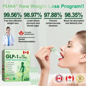 Peaka® SIX IN-ONE Health Solution Oral Liquid was developed by a team of over 30 experts in international endocrinology and diabetology after more than 3 years of research. It combines Meglutide with powerful herbal ingredients to boost metabolism. accelerate fat burning. and support digestive and lymphatic health. This oral solution has been approved by the Health Canada(HC) for its safety and efficacy. offering a scientifically backed solution for weight loss and overall wellness.
