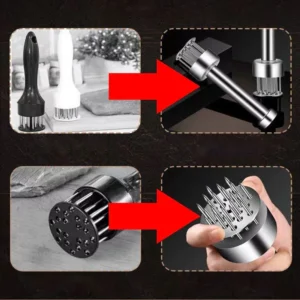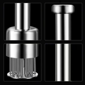 These 304 Stainless steel needles break down meat fibers/connective tissues and make marinade absorb better and faster, cook more evenly, and also hasten the cooking time.