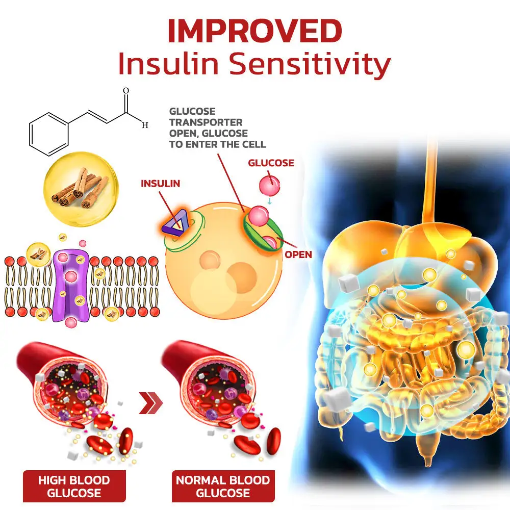 Cinnamon – Cinnamon is thought to help lower blood sugar levels through a number of mechanisms, including increasing insulin sensitivity and promoting glucose metabolism. Active compounds in cinnamon such as cinnamaldehyde may contribute to insulin action. Cinnamon may mimic the action of insulin by increasing glucose transporter proteins in cell membranes, thus facilitating cellular uptake of glucose, which helps lower blood sugar levels and to some extent reduces dependence on insulin secretion.