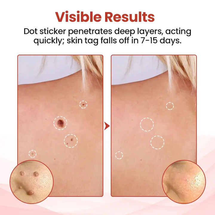 Within 7–14 days, the skin tag painlessly falls off, leaving the skin smooth and clear — with no freezing, cutting, or scarring involved.